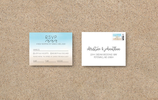 Let this suite design take all your wedding stress away. A tranquil abstract beach background with modern calligraphy font.